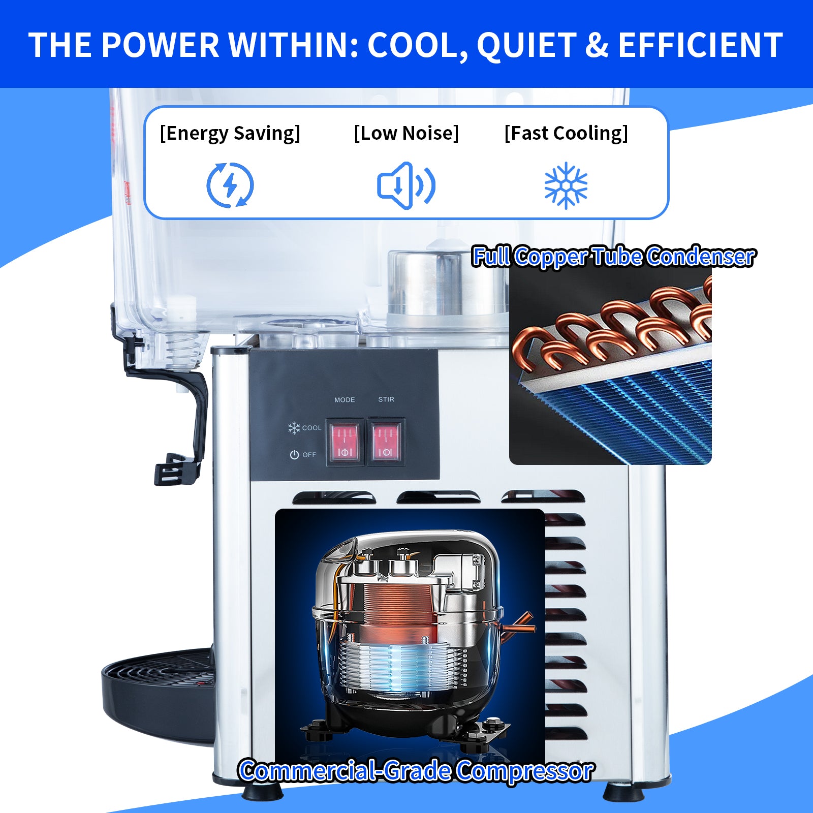 - LARGE 18L CAPACITY & RAPID COOLING: Keep your guests refreshed with a generous 18L (4.8 Gal) capacity, perfect for serving large quantities of juice, iced tea, or lemonade without constant refilling. The efficient 150W cooling system chills beverages to a perfect 45-54°F (7-12°C), ensuring a consistently cold and delicious drink experience for your customers